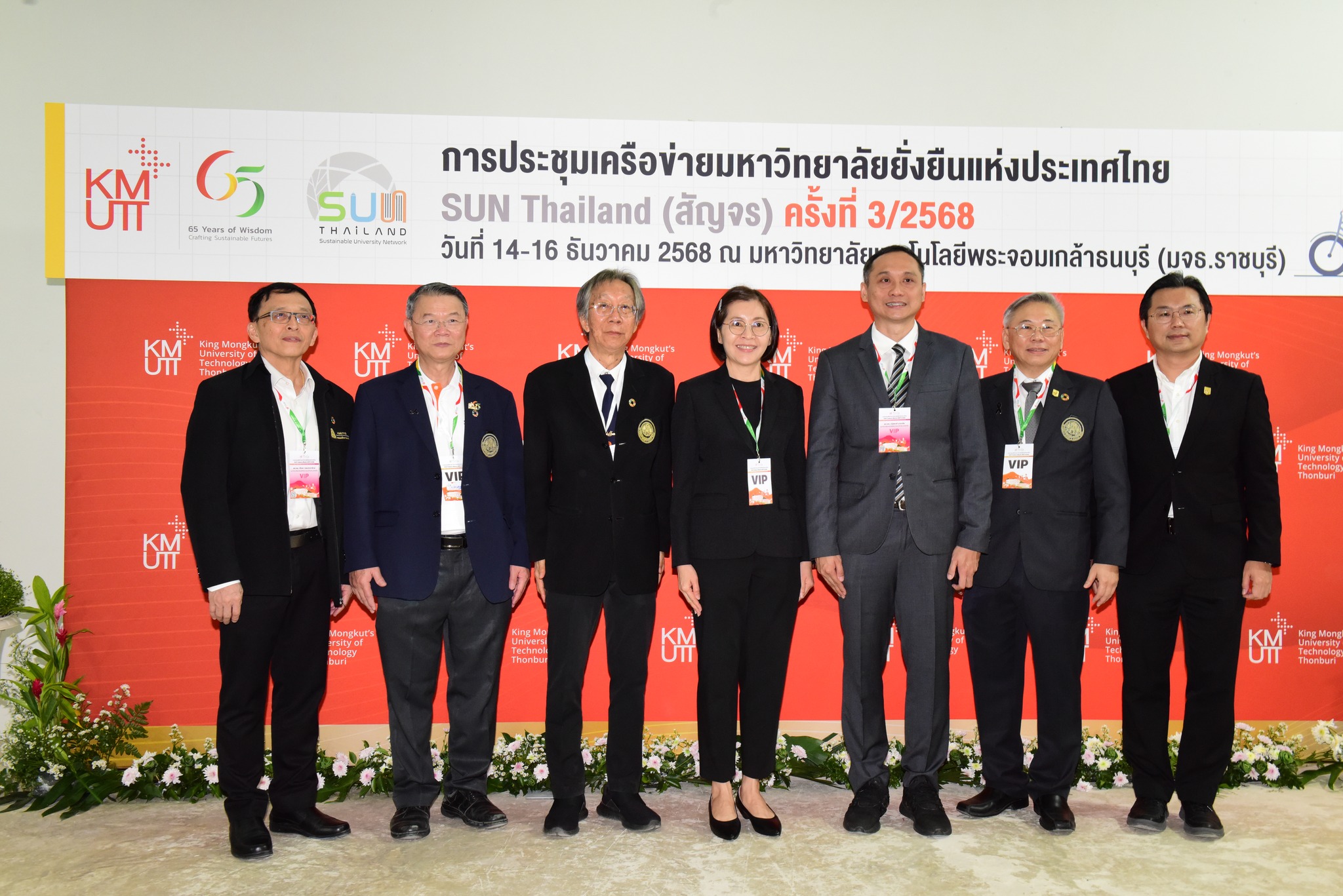 มหาวิทยาลัยโดย รองศาสตราจารย์ ดร.ณัฐพงศ์ มกระธัช รองอธิการบดีฝ่ายพัฒนากิจการมหาวิทยาลัยเพื่อความยั่งยืน ในฐานะประธานเครือข่ายมหาวิทยาลัยยั่งยืนแห่งประเทศไทย รองศาสตราจารย์ ดร.ศักดา กตเวทวารักษ์ ผู้ช่วยอธิการบดีฝ่ายพัฒนาสิ่งแวดล้อมและกายภาพ พร้อมด้วยคณะกรรมการขับเคลื่อนการพัฒนาอย่างยั่งยืนตามพันธกิจของ มจพ. และเครือข่ายมหาวิทยาลัยยั่งยืนแห่งประเทศไทย (SUN Thailand) เข้าร่วมประชุมศึกษาดูงาน แลกเปลี่ยนเรียนรู้ และการประชุมสมาชิกเครือข่ายมหาวิทยาลัยยั่งยืนแห่งประเทศไทย (SUN Thailand) (สัญจร) ครั้งที่ 3 ประจำปี 2568 พร้อมการประชุมคณะกรรมการเครือข่ายฯ ครั้งที่ 4/2568 ระหว่างวันที่ 14 – 16 ธันวาคม 2568 ณ มหาวิทยาลัยเทคโนโลยีพระจอมเกล้าธนบุรี วิทยาเขตราชบุรี